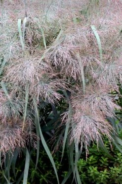 One of the finest of our North American native grasses that provides four-season interest in the landscape, ‘Dallas Blues’ is a robust grower featuring the widest and bluest foliage of any Switch Grass. Whether planted as a specimen or massed, it is truly a presence in the landscape. In spring, new shoots emerge powder blue forming an impressive upright clump to around 5 feet tall and maybe 3 feet wide that becomes topped in summer by huge clouds of silvery plum-colored flowers that intensify in color as they age finally turning to a buff-white color. The flower panicles persist for months and are excellent for cutting and use in cut flower arrangements. Winter brings a fourth season of enjoyment as the rustling grass turns to cream tones. The foliage of this variety stands tall even under the weight of snow. The songbirds and other wildlife with appreciate the tiny seeds and will use the sturdy foliage clumps as a cold weather shelter.