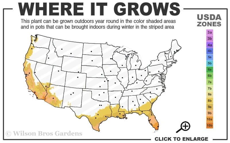 USDA Plant Hardiness Zones:Â 8b-10b (8a?)Â Â Find Your Zone